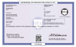 Our Motto: is to breed only the very best to the very best! We don’t take shortcuts, and we do it because we LOVE what we do and because we find joy in providing families with amazing dogs that change lives. It’s also fun and rewarding for us to hear the stories we receive from our families about how much they LOVE their Guardian Boerboel.